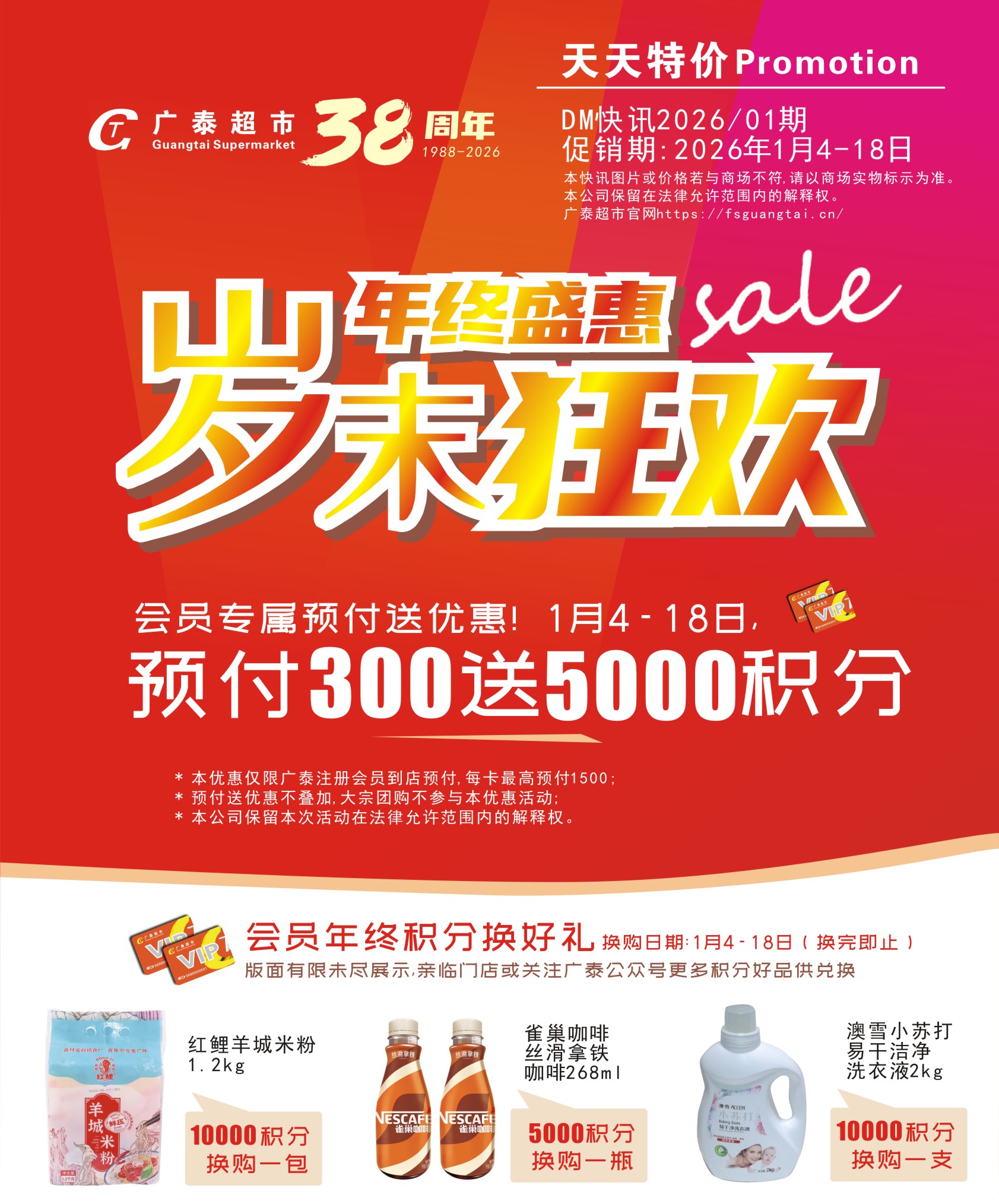 广泰超市 | 年终盛惠 岁末狂欢 会员专属预付300送5000积分!!